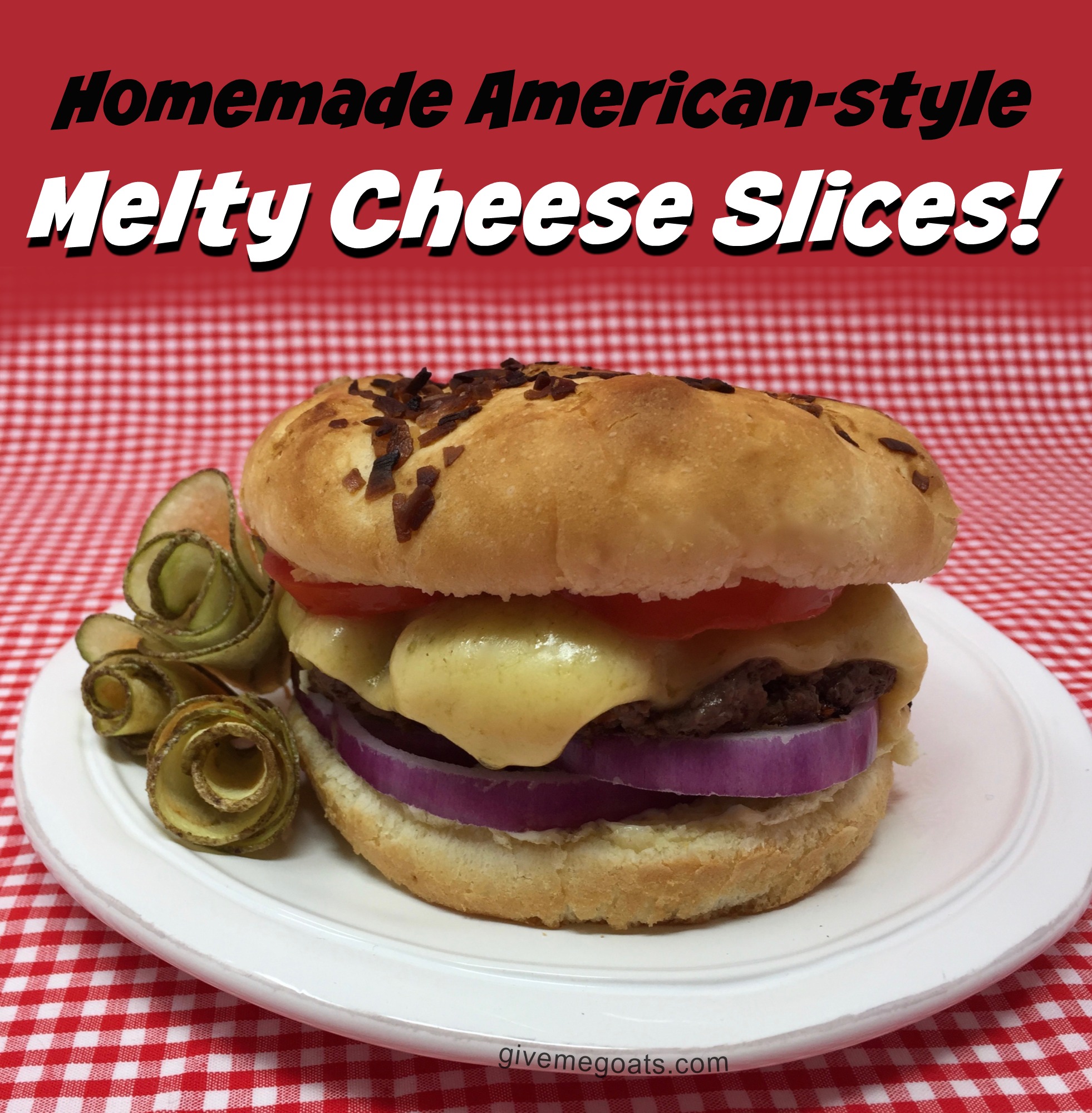 Melty, luscious slices of cheese… The kind that drapes tantalizingly over the cheeseburgers of our dreams. We love ’em. We want ’em. But we’re home-crafted cheesemakers, and let’s face it, hard cheeses made with goat’s milk just don’t melt with the same come-hither glory that cow’s-milk hard cheeses do. We could sneak down to the store and buy that square package of American cheese, yet we can’t bring ourselves to take a shortcut like that. We want our fancy cheese, by golly, and won’t settle for less.